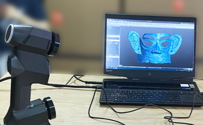▲使用智能手持式藍(lán)色激光掃描儀掃描寬1.38m的青銅大面具